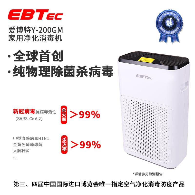 爱博特Y-200GM家用净化消毒机 杀新冠流感等各种病毒细菌 除甲醛二手烟除异味臭味过敏源 负氧离子 静音