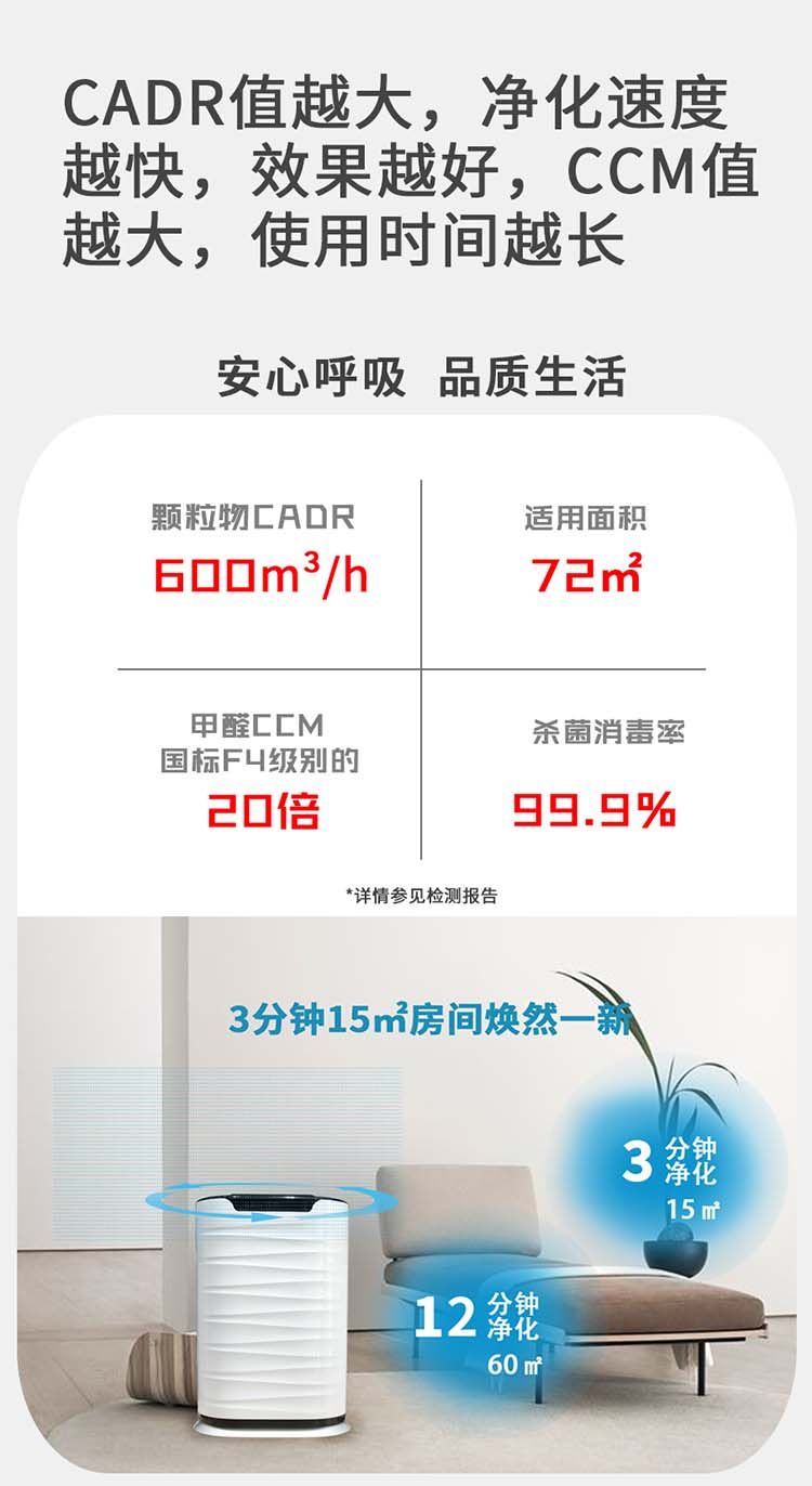 爱博特Y-600GM家用净化消毒机 杀新冠流感等各种病毒细菌 除甲醛二手烟除异味臭味过敏源 负氧离子 静音