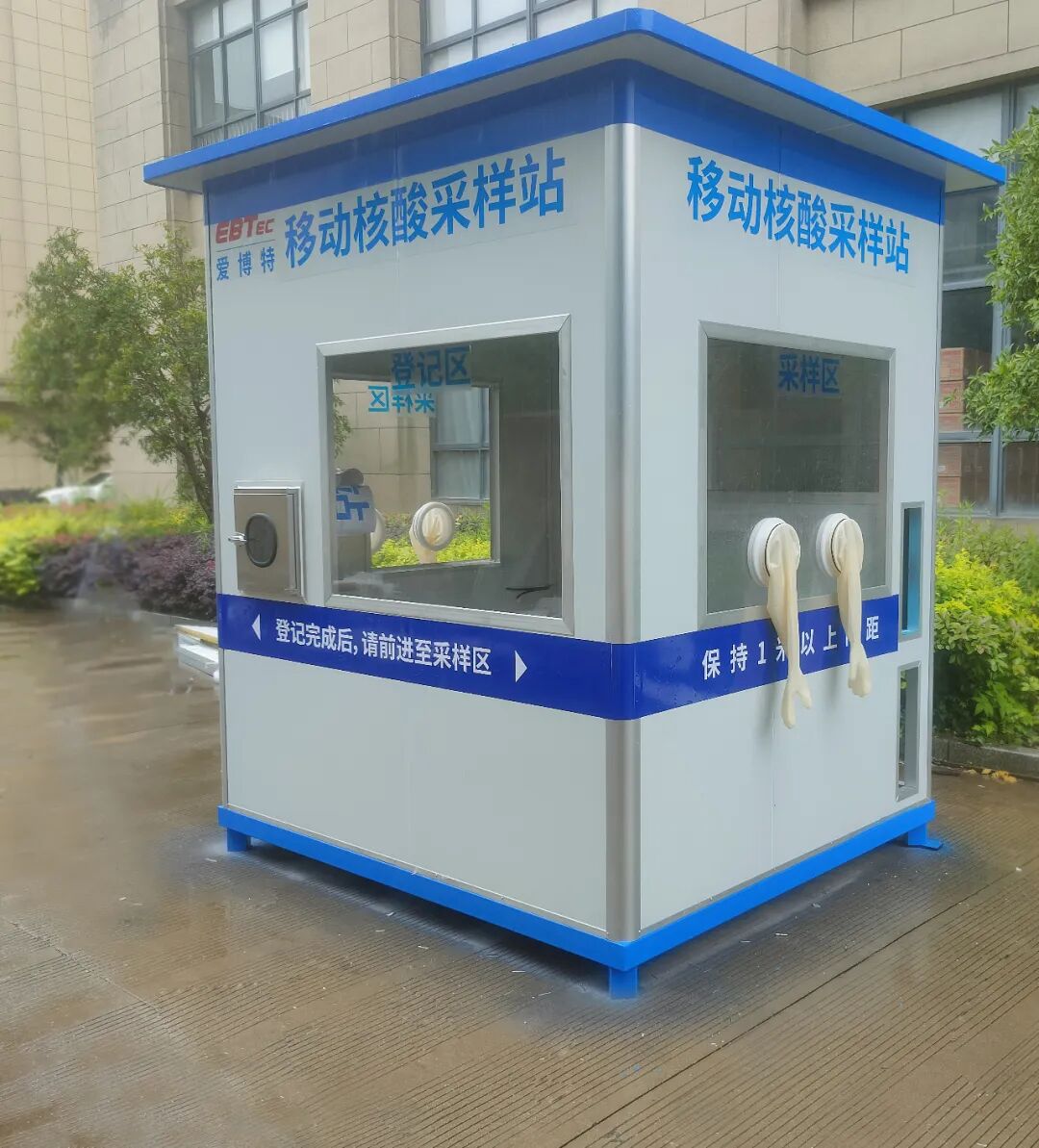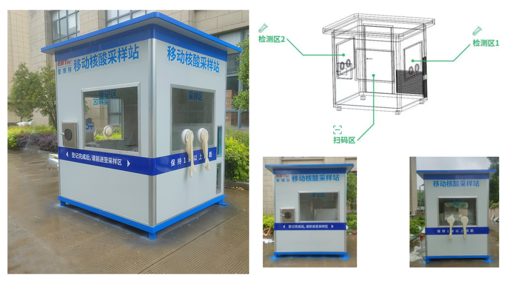 移动式核酸采样工作站,又名安全采样舱、移动式采样亭、采样隔离箱,适用于医院、检测机构、高铁、火车站、机场、高速口、小区等场地,医护人员可在舱内完成核酸采样和自动手消毒等工作,安全采样避免了与采样对象直接接触,降低了交叉感染风险,提高了工作效率。